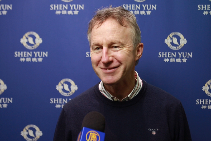 莫妮·潘加利先生说:“(神韵)故事动人,舞蹈编排极为精彩,很好地展现了这个国家的历史。”潘加利先生说:“(神韵舞蹈)技术性极高,(动作)利落而感染力强,令人惊叹,编舞棒得让人难以置信。” 神韵女高音歌唱家的精彩演唱也给潘加利先生留下了很深的印象,他说:“难以置信!她拥有非常美妙的歌喉,非常棒!” 他并说:“舞蹈中表达了所想要表达的,内涵通过舞蹈展现了出来,非常直观。”“我想这场演出可以让我们学到很多。” 意大利艺术学院副校长盛赞:神韵令人振奋 意大利孔蒂戏剧艺术学院副校长罗德·琼斯(Rod Jones)在观看了一月十九日神韵国际艺术团在伦敦的演出后,称赞说:“演出将我们带回到中国不同的历史阶段、不同的区域,我喜欢神韵表述故事的方式、服饰以及高超的翻腾技艺,真是令人惊叹。”  图3:意大利孔蒂表演艺术学院的副校长罗德·琼斯(Rod Jones) |