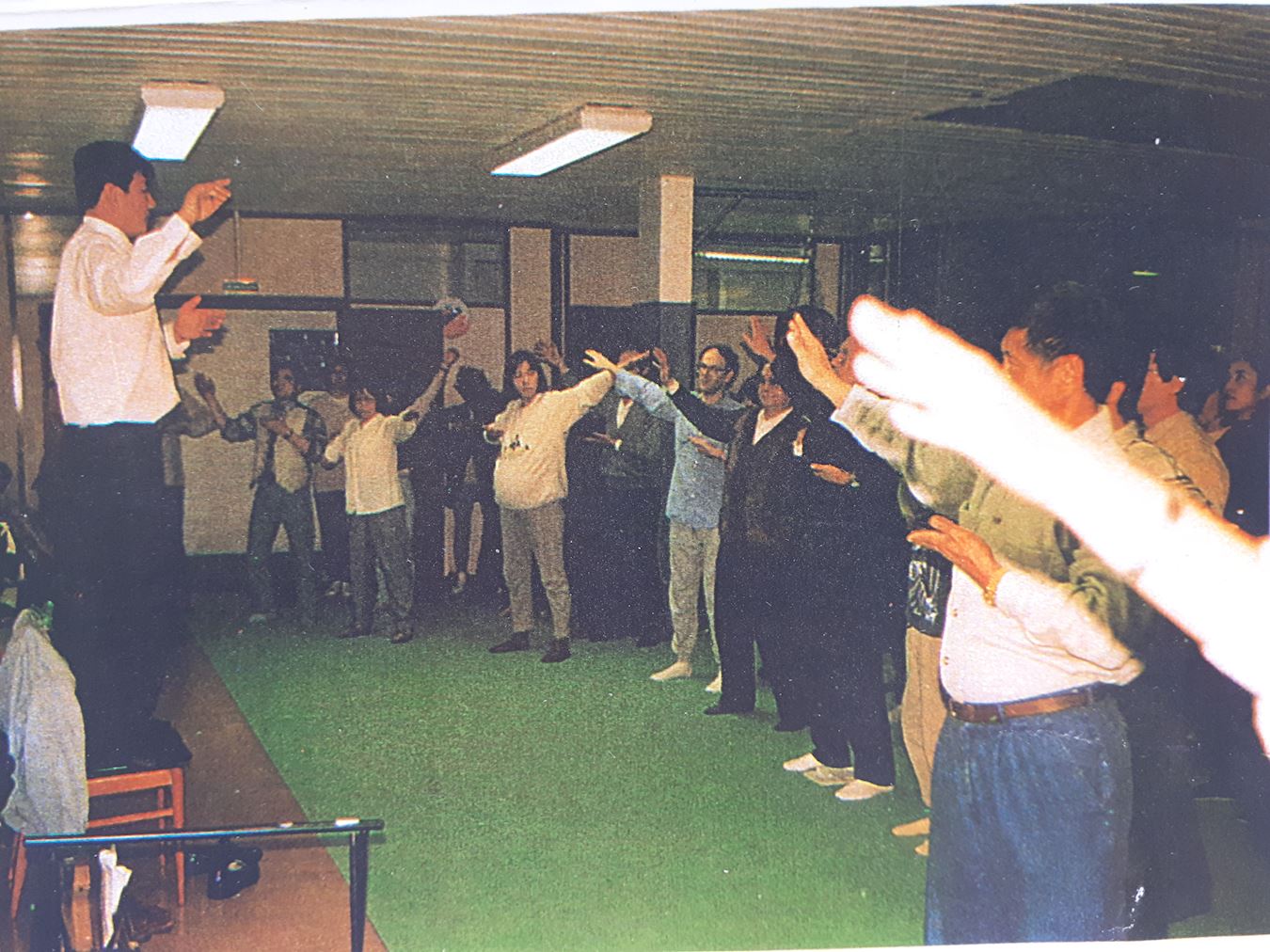 图2:师父在传法班上教学员炼功 |