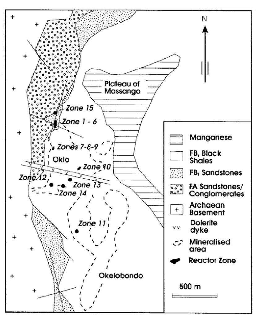 图3:Oklo-Okelobondo矿区图(Keld Alstrup Jensen et al., 2001) |