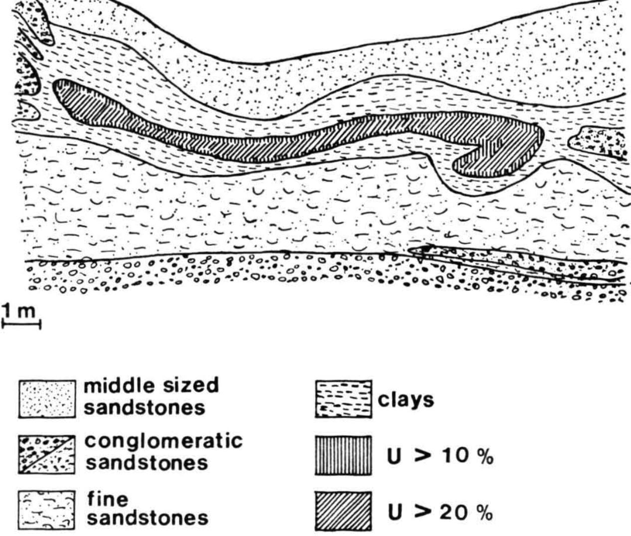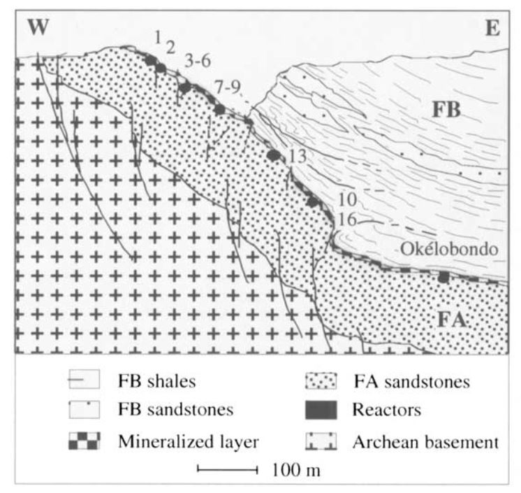 图8:Oklo-Okelobondo矿区剖面透视图(Régis Bros et al., 2003) |