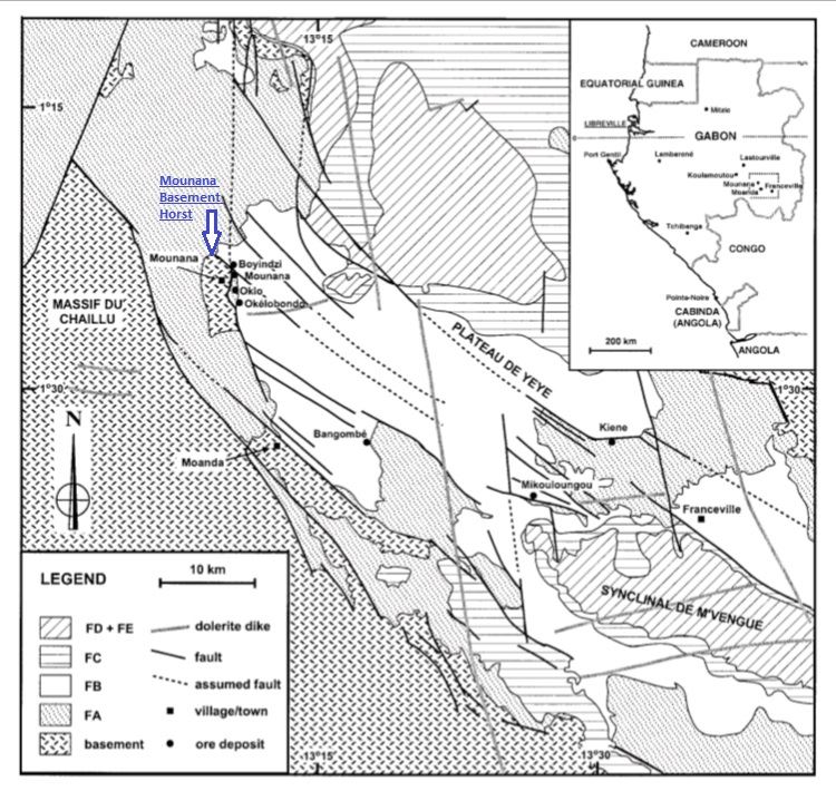 图5:Franceville沉积盆地西南部平面图(Keld Alstrup Jensen et al., 2001) |