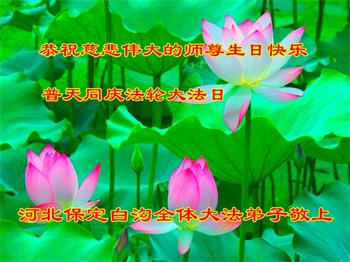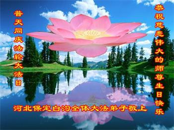 河北保定市莲池区一学法小组全体大法弟子恭祝伟大的师尊生日快乐!恭贺世界法轮大法日!