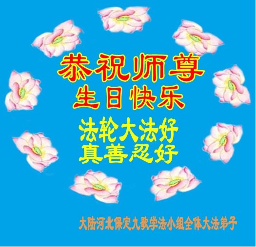 河北保定市九歌学法小组全体大法弟子恭祝师父生日快乐!