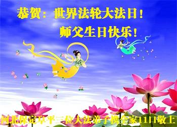 河北省保定一夫妻大法弟子恭祝师尊生日快乐!普天同庆世界法轮大法日!