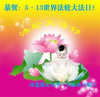在今后的修炼中一定要转变人的观念,真正的做到实修。 河北保定蠡县大法弟子及全家恭祝师尊华诞!庆贺5·13世界法轮大法日!普天同谢师尊,叩拜师尊慈悲普度!