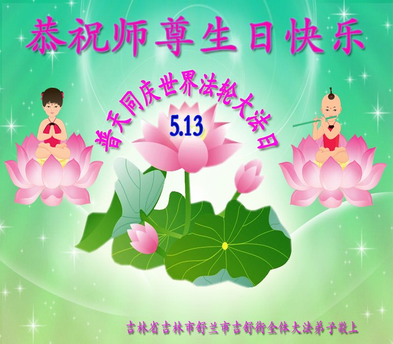 吉林省吉林市舒兰市吉舒街全体大法弟子恭祝师尊生日快乐!普天同庆世界法轮大法日!