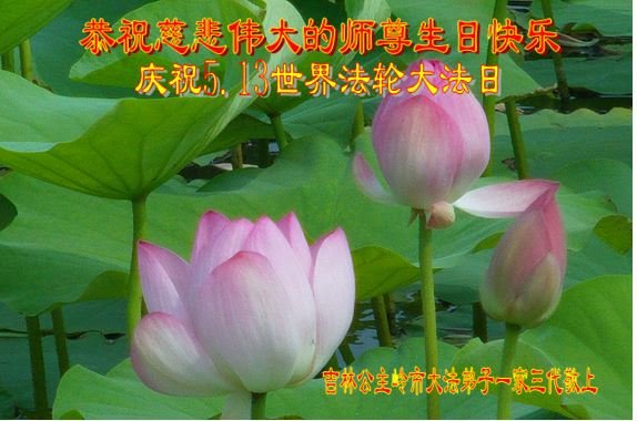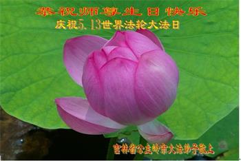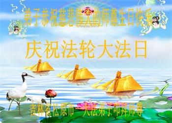 弟子得法二十多年,时刻都沐浴在恩师的浩荡佛恩中。是师父把我从苦海中捞起、洗净,领着我走过了一关又一关。弟子唯有努力精進,听师父的话,实修自己,学好法,多救人,完成助师正法救度众生的使命。弟子叩拜恩师! 吉林省白城市一大法弟子恭祝师父生日快乐!恭贺世界法轮大法日!