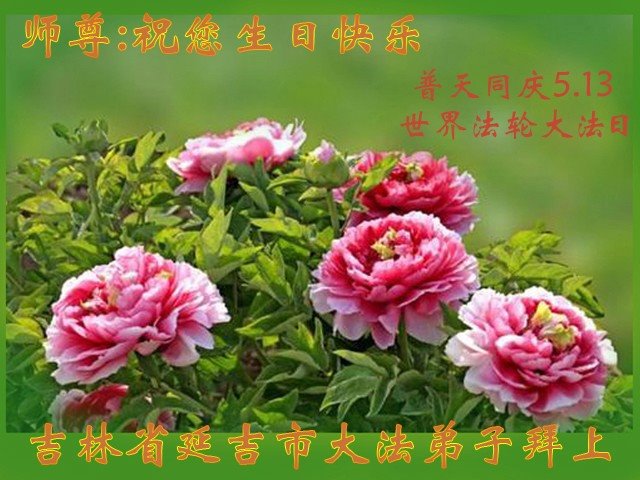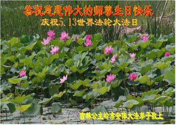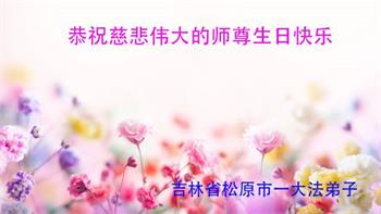 吉林省松原市一大法弟子恭祝师尊生日快乐!弟子感恩师尊慈悲救度!叩拜师尊! 吉林省辽源市全体大法弟子恭祝慈悲伟大的师尊生日快乐!普天同庆世界法轮大法日!众弟子盼师归!