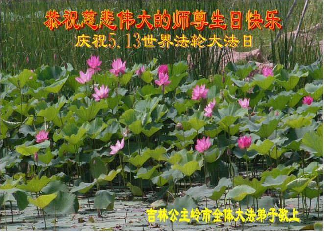吉林省四平市公主岭市全体大法弟子恭祝慈悲伟大的师尊生日快乐!庆祝世界法轮大法日!