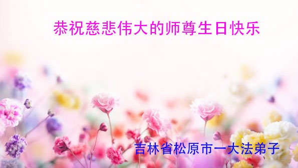 感恩师父的洪大慈悲,将愚笨的我在旧势力的迫害漩涡中救起!感恩师父的洪大慈悲,将罪业深重的我不断的清洗、净化。感恩师父的洪大慈悲,将濒临毁灭的生命,有幸在大法中修炼。感恩的心在抽泣!感恩的泪在流淌!弟子听师父的话,放弃人心,严格要求自己,在大法中精進实修,以报师恩。弟子叩拜师尊! 吉林省通化市梅河口市一大法弟子恭祝师父生日快乐!感恩师父慈悲救度!