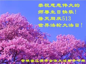 吉林省辽源市全体大法弟子恭祝慈悲伟大的师尊生日快乐!普天同庆世界法轮大法日!