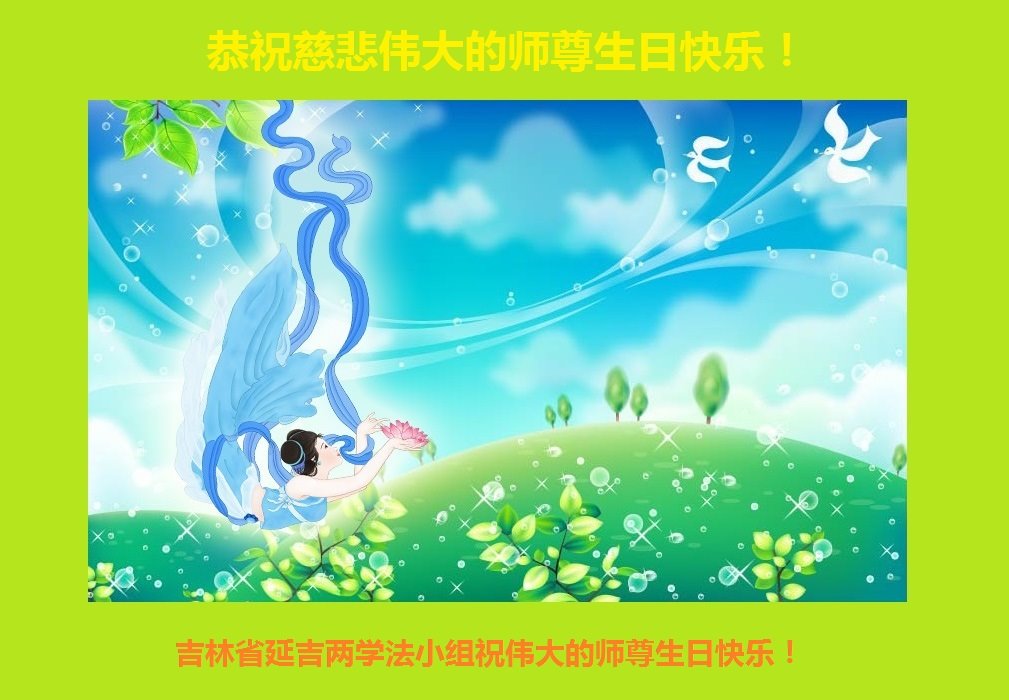 感恩慈悲伟大的师尊救度无量众生!弟子们想念师尊!白山市抚松县大法弟子合十叩拜! 吉林省延边州延吉市大法弟子恭祝师父生日快乐!普天同庆法轮大法日!