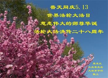 黑龙江省大庆市一夫妻大法弟子恭贺师尊华诞暨世界法轮大法日!
