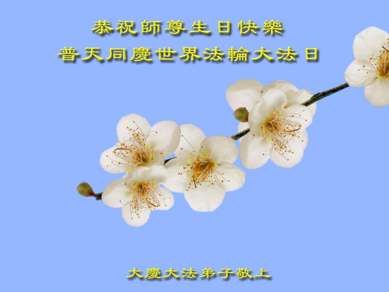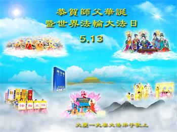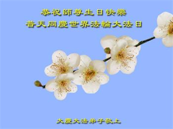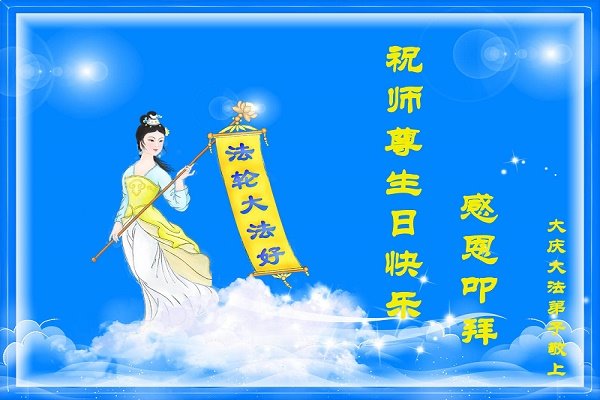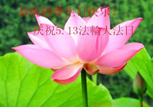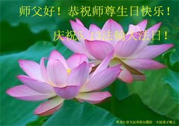 每年的这个时刻,我都代表学法小组的大法弟子们向师父恭祝生日好。今年我离开了当地,相信家乡的大法弟子都做的很好。我们共同努力做好三件事,不辜负师父的慈悲救度。 黑龙江省大庆市肇州县一学法小组大法弟子恭祝师父生日快乐!庆贺五·一三法轮大法日!
