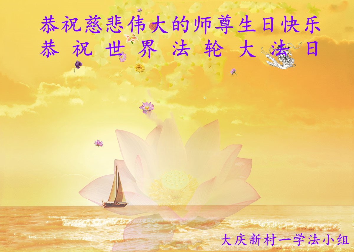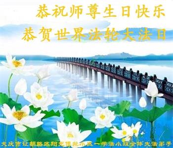 黑龙江省大庆一大法弟子恭祝师尊生日快乐!庆祝法轮大法日!