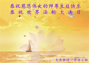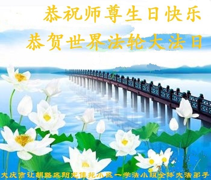 黑龙江省大庆市让胡路区阳光佳苑一学法小组大法弟子恭贺世界法轮大法日!