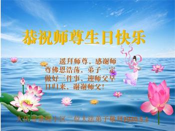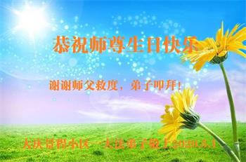 黑龙江省大庆景程小区一大法弟子恭祝师父生日快乐!