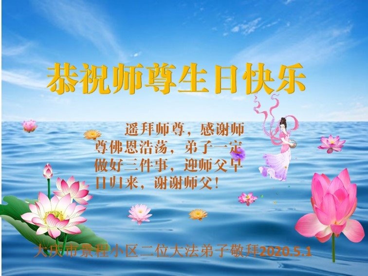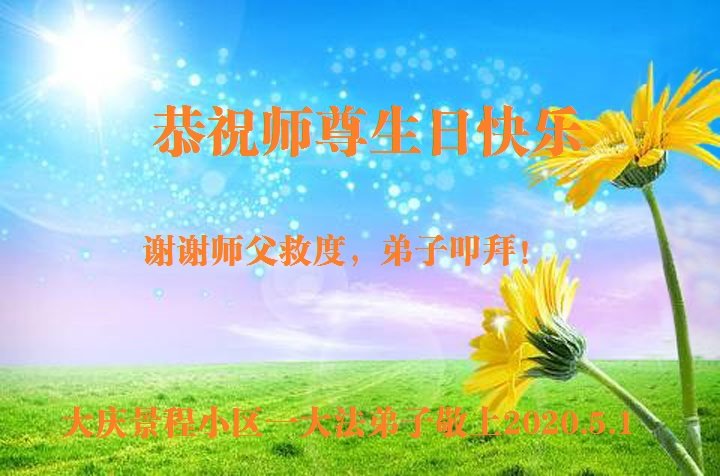 【明慧网二零二零年五月十一日】 黑龙江大庆一学法小组大法弟子恭祝慈悲伟大的师尊生日快乐!