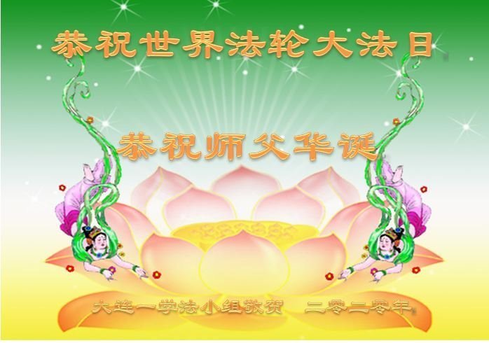 辽宁大连市一学法小组大法弟子恭贺世界法轮大法日!恭祝师父华诞!