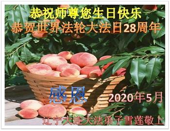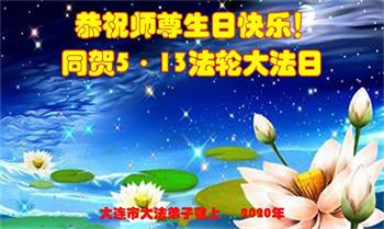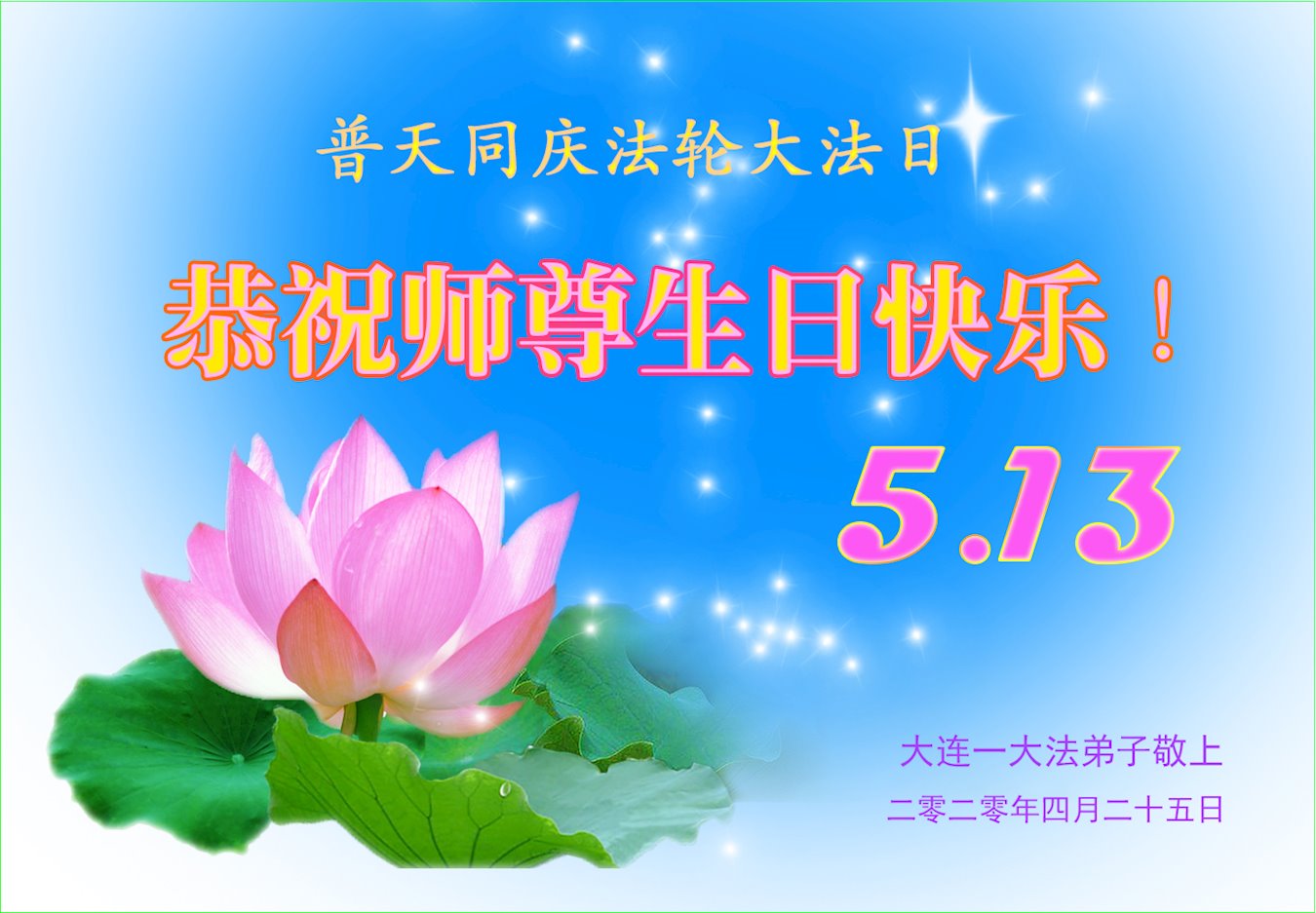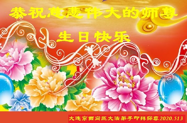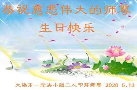 【明慧网二零二零年五月十一日】 辽宁大连一大法弟子恭祝师尊生日快乐!恭贺世界法轮大法日!