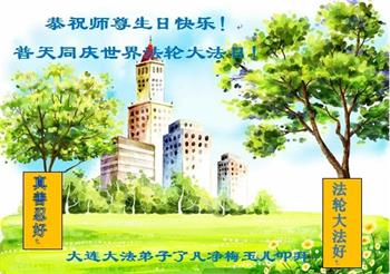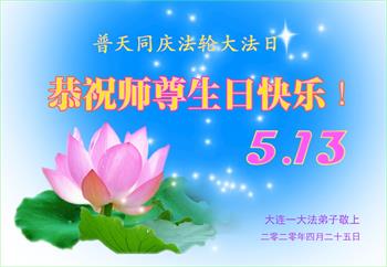 辽宁大连市三位大法弟子恭贺师尊华诞暨世界法轮大法日!
