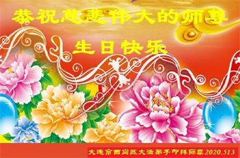 辽宁省大连一大法弟子恭祝师尊生日快乐!