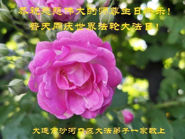 值此第二十一届世界法轮大法日暨师父华诞日,大连一学法小组大法弟子诚心恭祝师父生日快乐!我们一定听师父话,做好三件事,跟师父回家! 辽宁大连一大法弟子恭祝师父生日快乐!