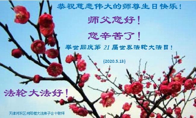 天津市河东区向阳楼大法弟子恭祝慈悲伟大的师尊生日快乐!