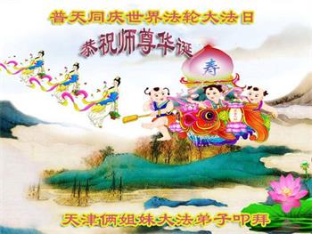 天津市大法弟子恭祝师父生日快乐!普天同庆同贺世界法轮大法日!弟子感恩师父!