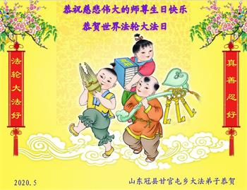 恭贺世界法轮大法日! 山东省聊城市冠县甘官屯乡大法弟子恭祝慈悲伟大的师尊生日快乐!