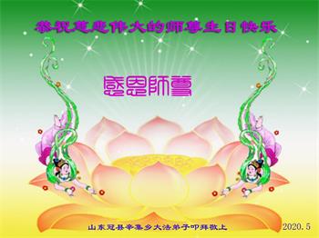 山东滨州全体大法弟子敬上 2020年5月13日 山东省聊城市冠县大法弟子恭祝慈悲伟大的师尊生日快乐!