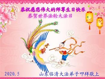 恭贺世界法轮大法日! 山东省聊城市临清市大法弟子恭祝慈悲伟大的师尊生日快乐!