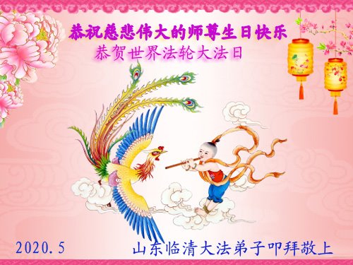 普天同庆世界法轮大法日! 师父 生日快乐!弟子想念师尊。 山东滨州大法弟子敬上 2020年5月13日 山东省滨州市全体大法弟子恭祝师父生日快乐!