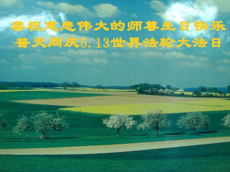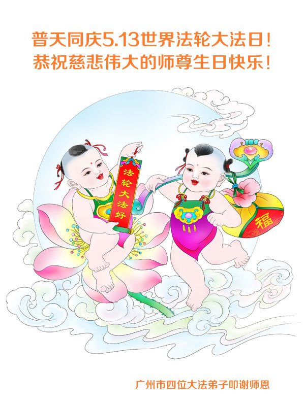 师尊您好!弟子一定努力完成使命,尽管做起来很难,但是目地是救人、要多救人。恭祝师尊生日快乐! 广东省广州市天河区一家大法弟子恭祝师父生日快乐!恭贺5.13世界法轮大法日!谢谢师尊,感恩师尊!