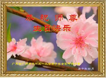 广东省广州市天河区大法弟子恭祝慈悲伟大的师父生日快乐!