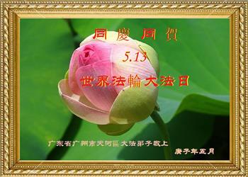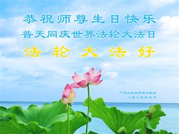 广东省广州大法弟子恭祝慈悲伟大的师尊生日快乐!普天同庆世界法轮大法日!