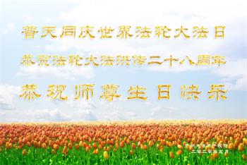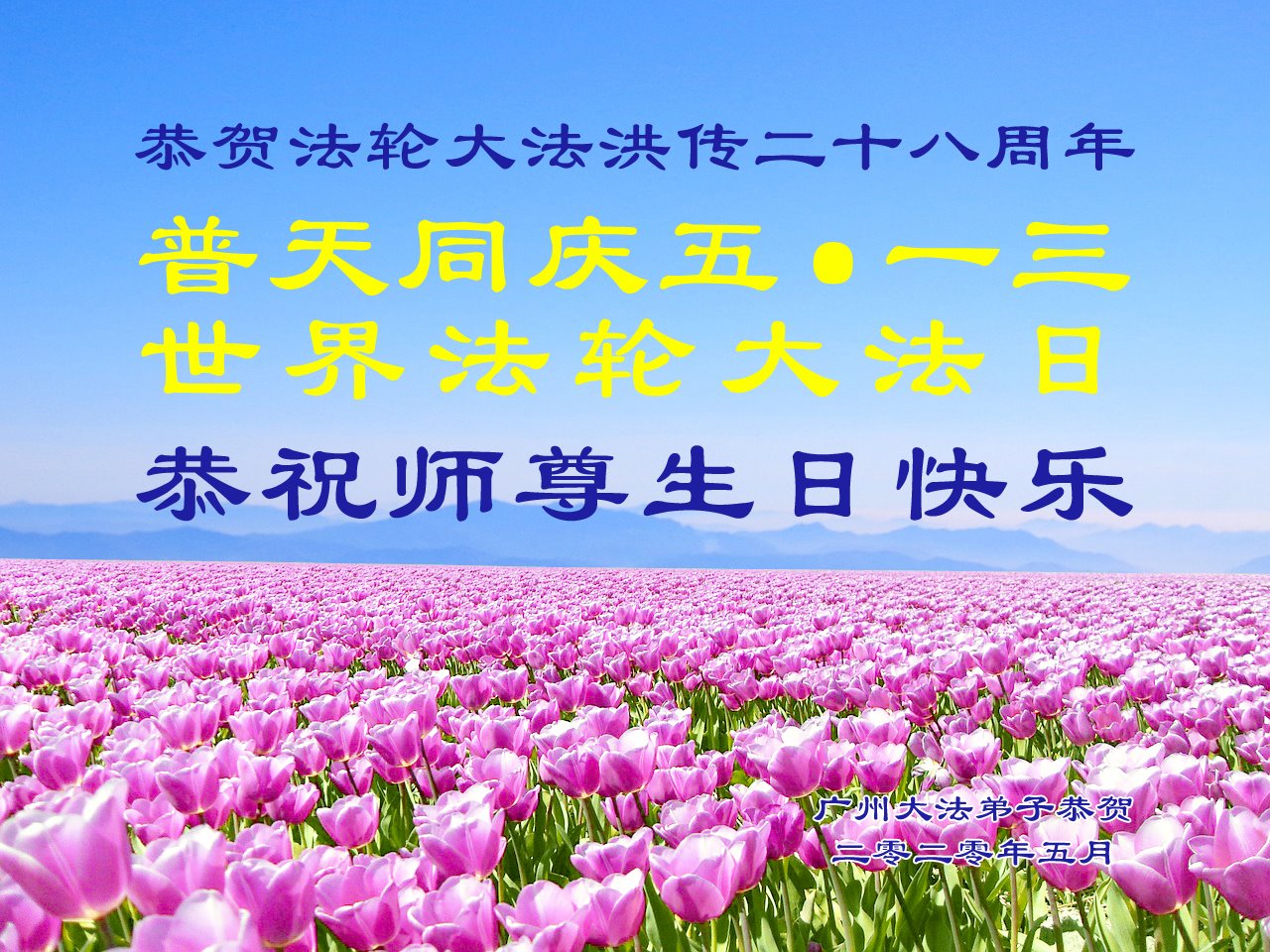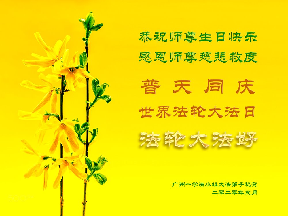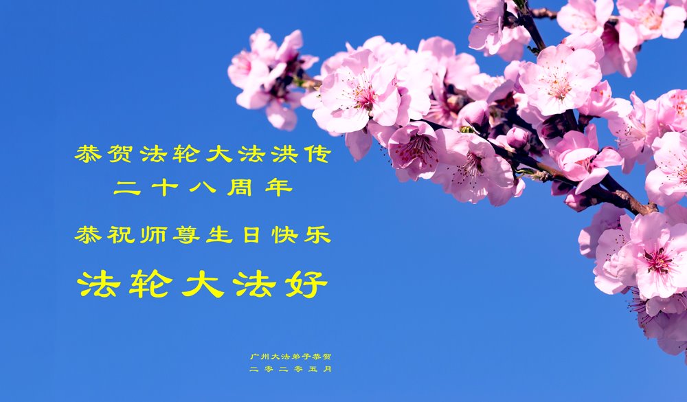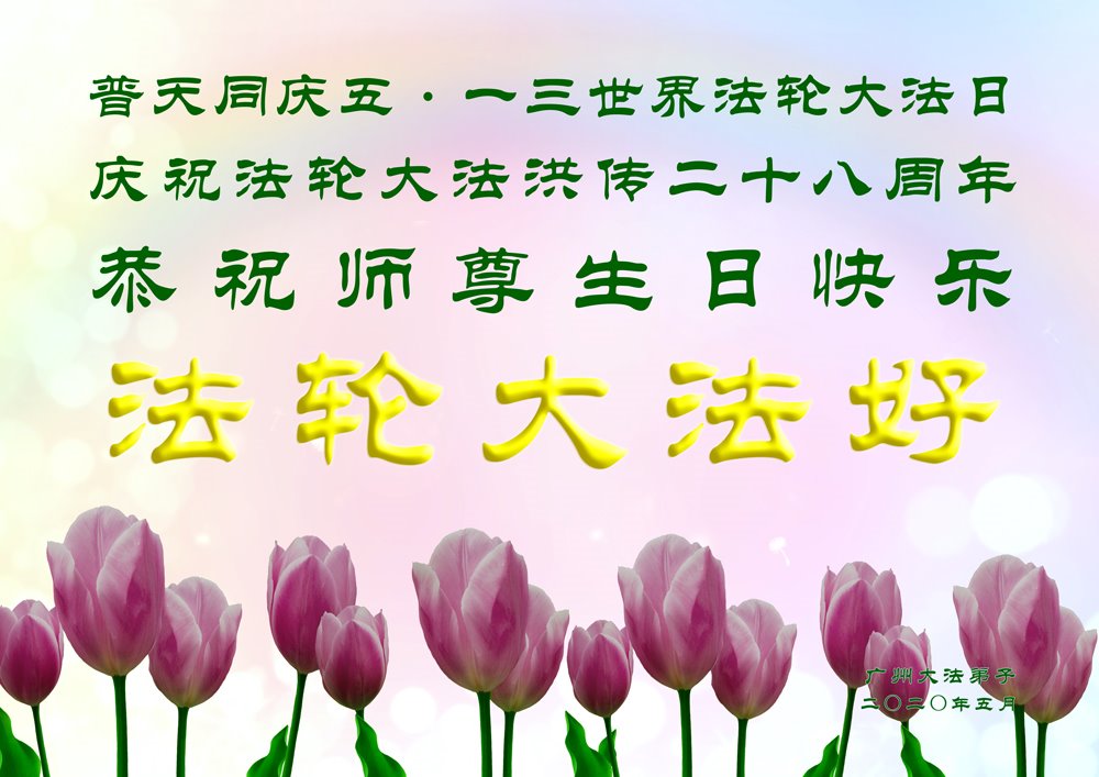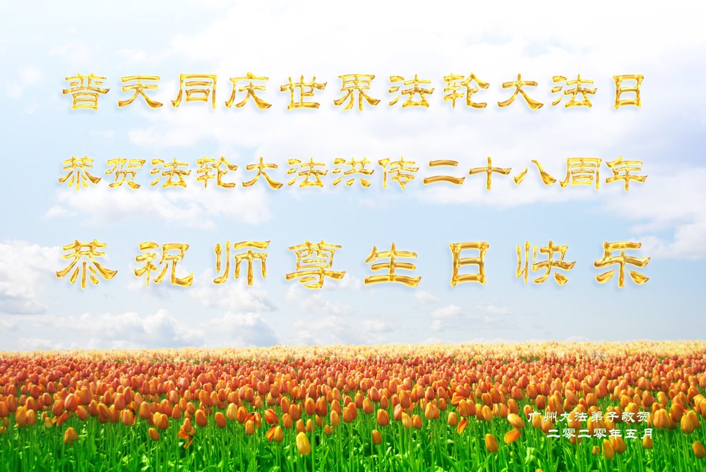 普天同庆世界法轮大法日!恭贺法轮大法洪传二十八周年!恭祝师尊生日快乐!广州大法弟子敬贺 二零二零年五月 广东省广州市大法弟子恭祝师尊生日快乐!
