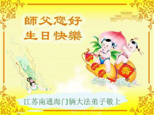 江苏南通海门全体大法弟子恭贺世界法轮大法日暨慈悲伟大的师尊华诞!