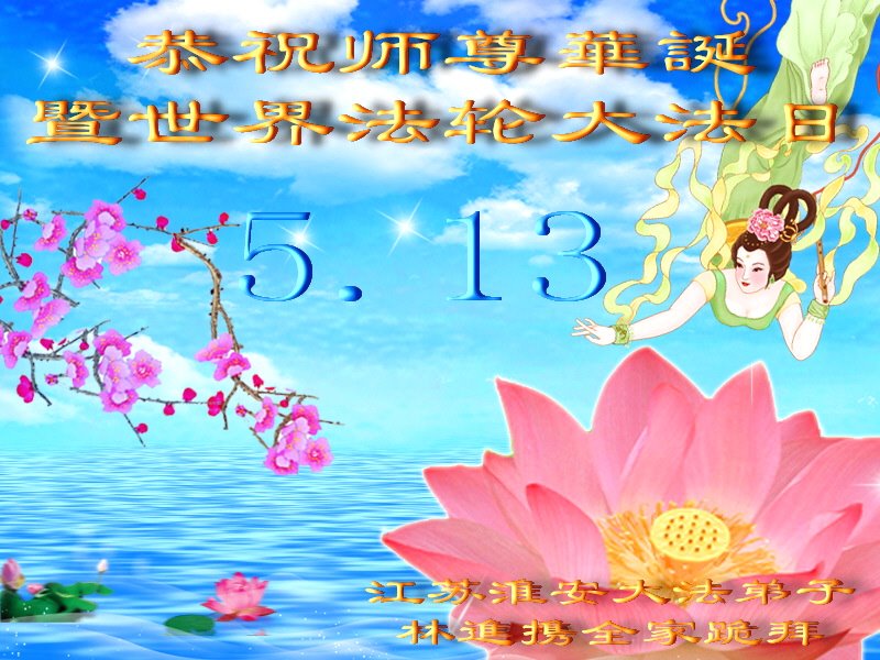 江苏淮安恭祝师尊华诞暨世界法轮大法日!感谢师尊救度之恩!