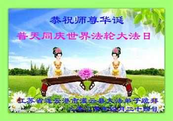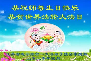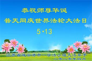 江苏省连云港市灌云县大法弟子恭祝慈悲伟大的师尊生日快乐!恭贺世界法轮大法日!
