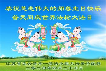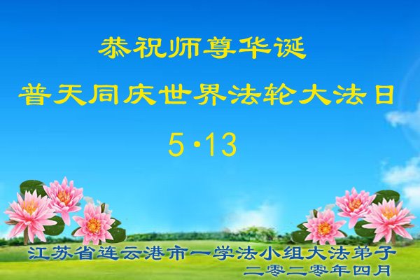 江苏省连云港市一学法小组大法弟子恭祝慈悲伟大的师尊生日快乐!恭贺世界法轮大法日!