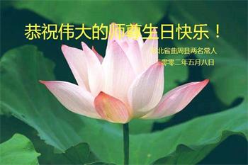 河北省邯郸市曲周县两名常人恭贺法轮大法日!