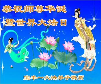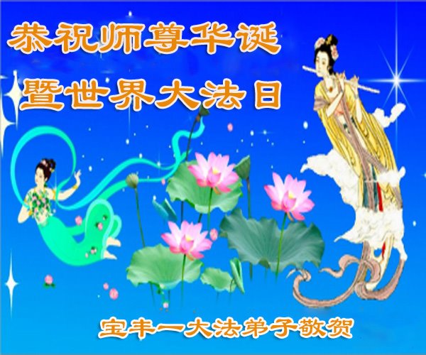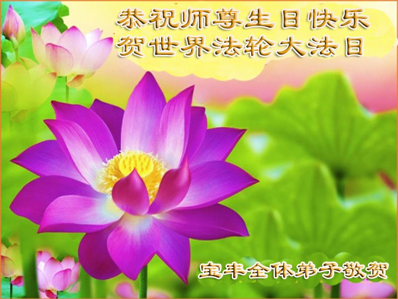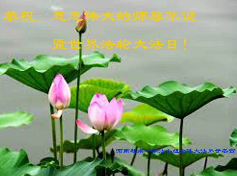 河南省平顶山市宝丰县一学法小组弟子恭祝慈悲伟大的师尊生日快乐!庆祝世界法轮大法日!我们学法小组弟子在此叩谢师尊,感谢师尊救度洪恩!在有限的时间里,兑现远古的誓约,圆满随师还!合十! 河南省平顶山市宝丰县一大法弟子恭祝师尊生日快乐!