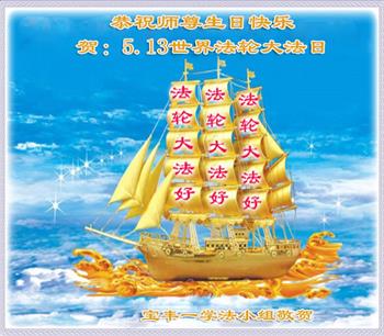 【明慧网二零二零年五月十一日】 河南省平顶山市宝丰县全体大法弟子恭祝师尊生日快乐!庆贺世界法轮大法日!