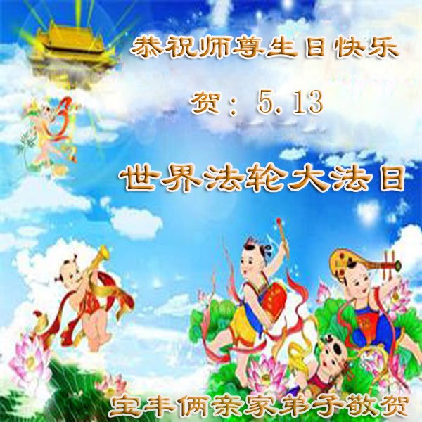 河南省平顶山市宝丰一大法弟子恭祝慈悲伟大的师尊生日快乐!庆贺世界法轮大法日!师尊您好!弟子在此叩拜师尊!感恩师尊的慈悲救度!是您把弟子从地狱中捞起,把这部宇宙高德大法传给弟子。修炼这么多年都没有修好自己,真的是愧对师尊的慈悲救度。弟子要在有限的时间里,兑现远古的誓约,修心断欲去执着,做好三件事,让师父多一份欣慰,少一份操劳。合十 河南省平顶山市宝丰县两亲家大法弟子恭祝师尊生日快乐!恭贺世界法轮大法日!
