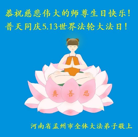 河南省焦作市孟州市全体大法弟子恭祝慈悲伟大的师尊生日快乐!普天同庆世界法轮大法日!