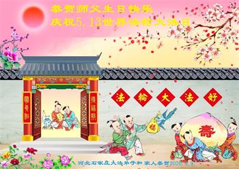 河北省石家庄谈固小区大法弟子恭祝师父生日快乐!恭贺5.13世界法轮大法日!