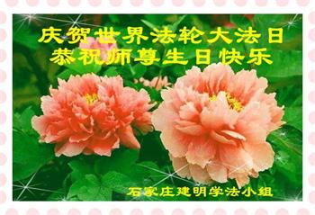 河北省石家庄高教区两大法弟子恭祝师尊生日快乐!恭贺世界法轮大法日!