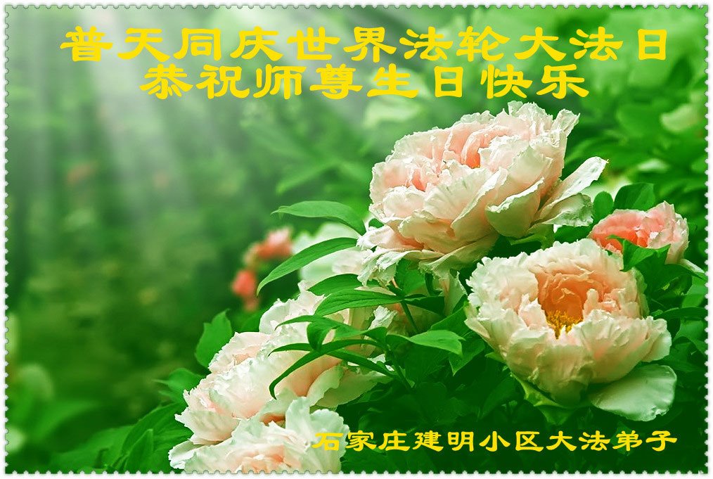 河北石家庄建明小区大法弟子恭祝师尊生日快乐!普天同庆世界法轮大法日!