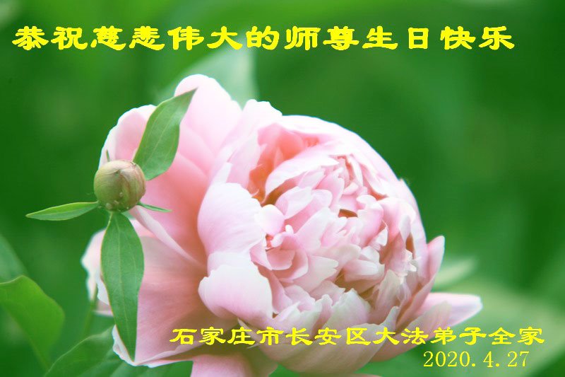 河北省石家庄一大法弟子代表在大法中受益的家人、丈夫、儿子、孙子、孙女恭祝慈悲伟大的师尊生日快乐!